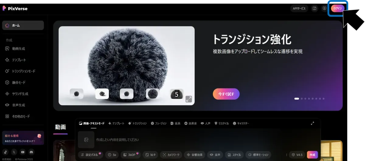 PixVerse enables intuitive operation. The basic usage flow is as follows:
