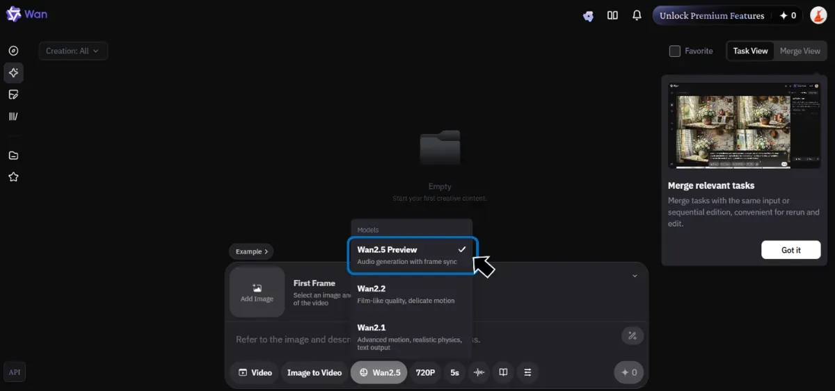 ItemWan 2.5 PreviewWan 2.2 ProfessionalWan 2.1 Turbo/Plus